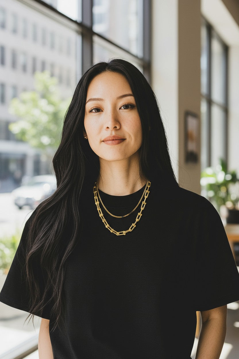 18K Gold Plated Stainless Steel U-Link Necklace with Ball Details
